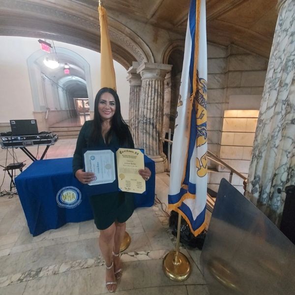 Lorena was recognized recently as a Plastic Arts Artist of the Year 2023. The Award was presented by the President of the Latino Edification Multicultural Aid Center, Deigo Muñoz. The display of her beautiful pieces of art took place at the Municipal Building in Newark, NJ, and was a part of the celebration of Hispanic Heritage Month. Congratulations on this fine achievement!